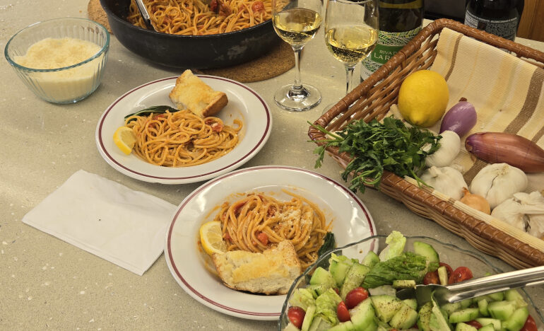 Today I am sharing another recipe that I grew up with — especially during Lent. I am not sure it even has a name; we just called it pasta with tomatoes and anchovies.