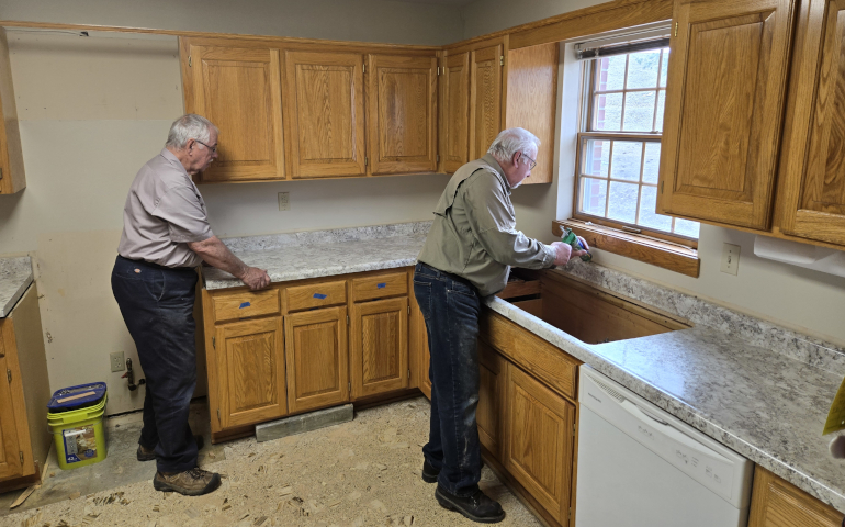 Concrete for the wheelchair ramp was poured on Feb. 4. Kitchen cabinets were refinished over the Christmas holiday, and new kitchen countertops were installed on Feb. 4-5.